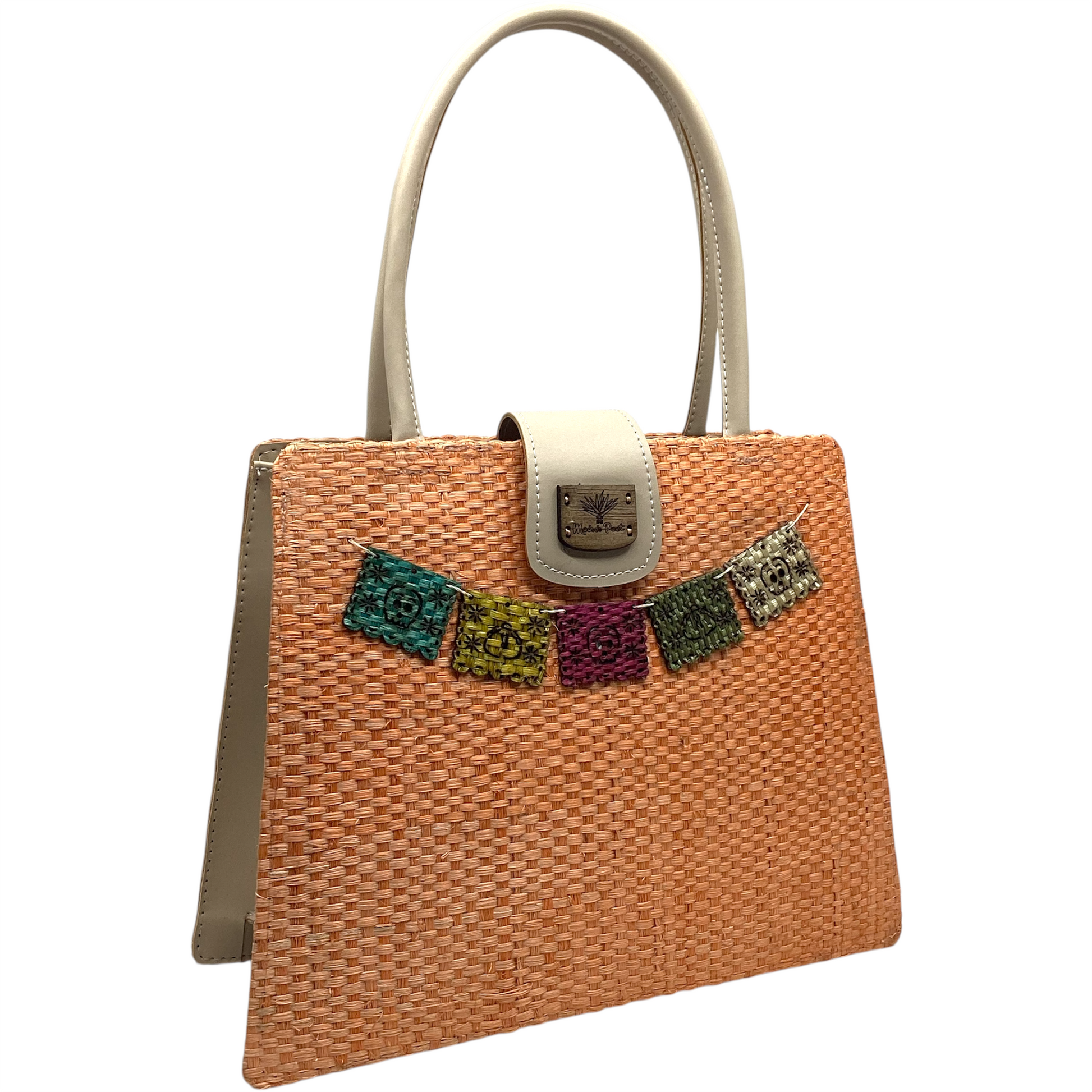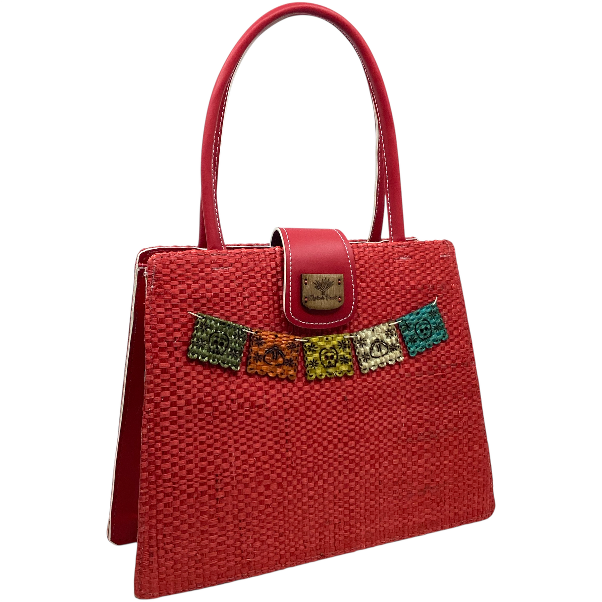 Hermoso y elegante bolso de mano elaborado con fibra 100% natural de henequén tejida a mano en telar de cintura maya, la aplicación esta inspirada en las fiestas en Honor de nuestros antepasados .